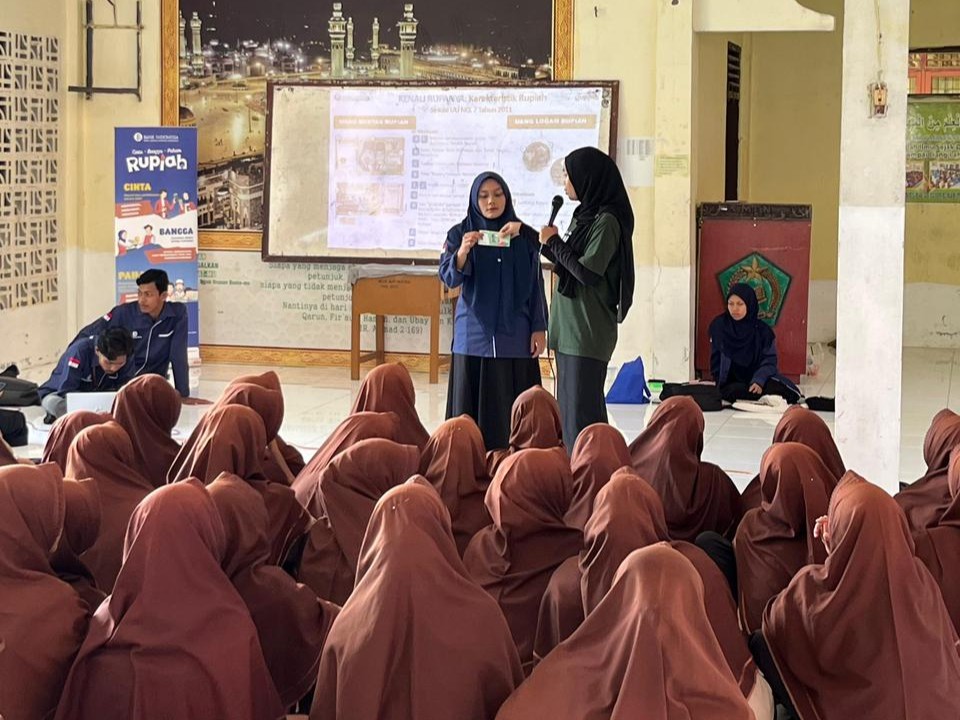 Bukan sekadar sosialisasi, momen ini menjadi ajang interaksi hangat antara mahasiswa dan siswa. Para pelajar diajak mengenali ciri-ciri keaslian uang Rupiah, memahami cara merawatnya, hingga menyadari peran penting Rupiah sebagai simbol kedaulatan negara. Sesi tanya jawab dan kuis berhadiah membuat suasana semakin hidup, memancing tawa dan rasa ingin tahu.